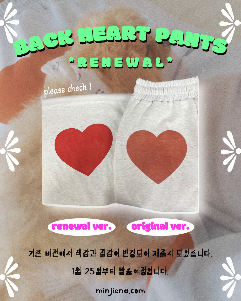 * The color and texture of the heart print have been renewed.
