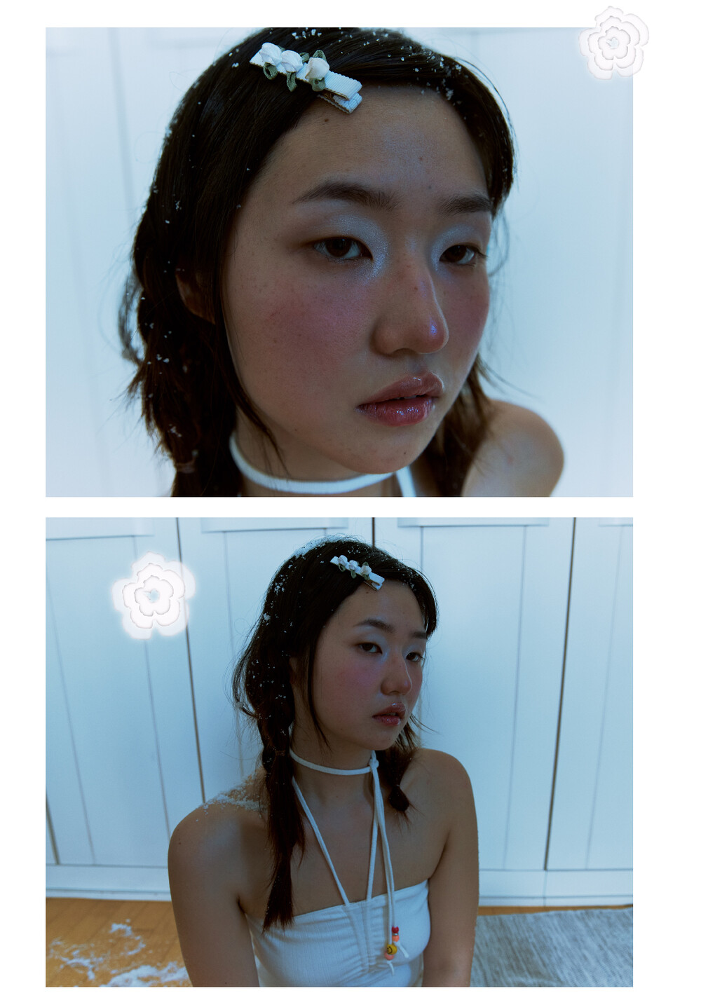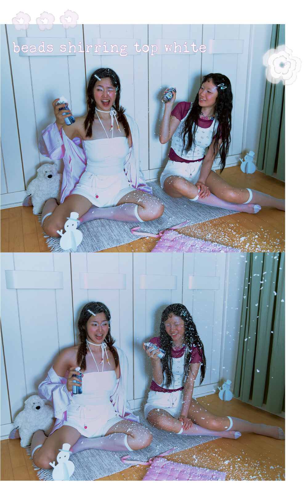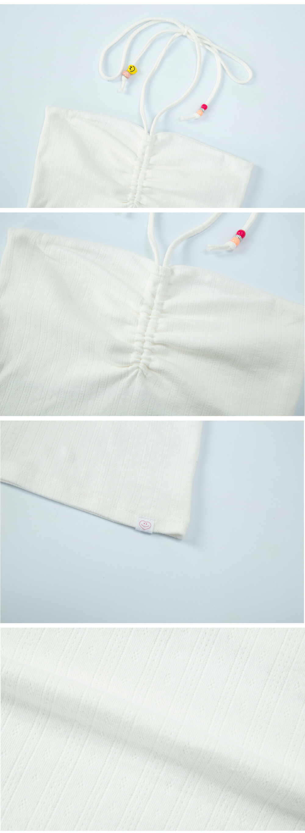 beads shirring top white