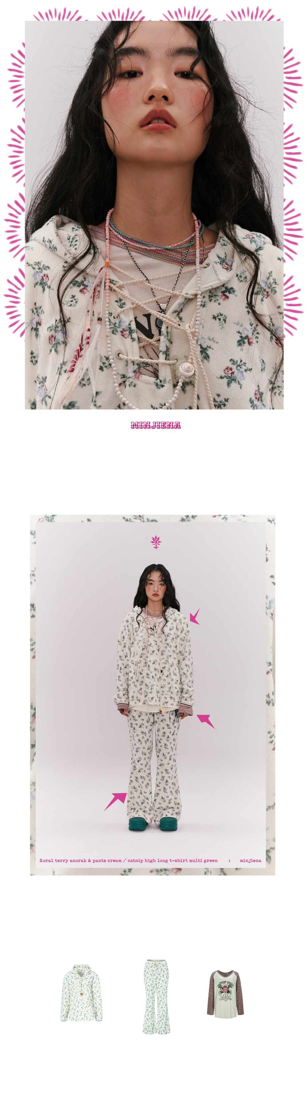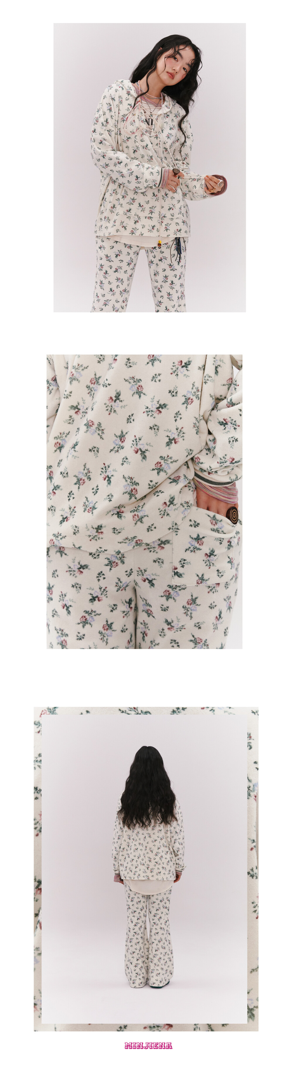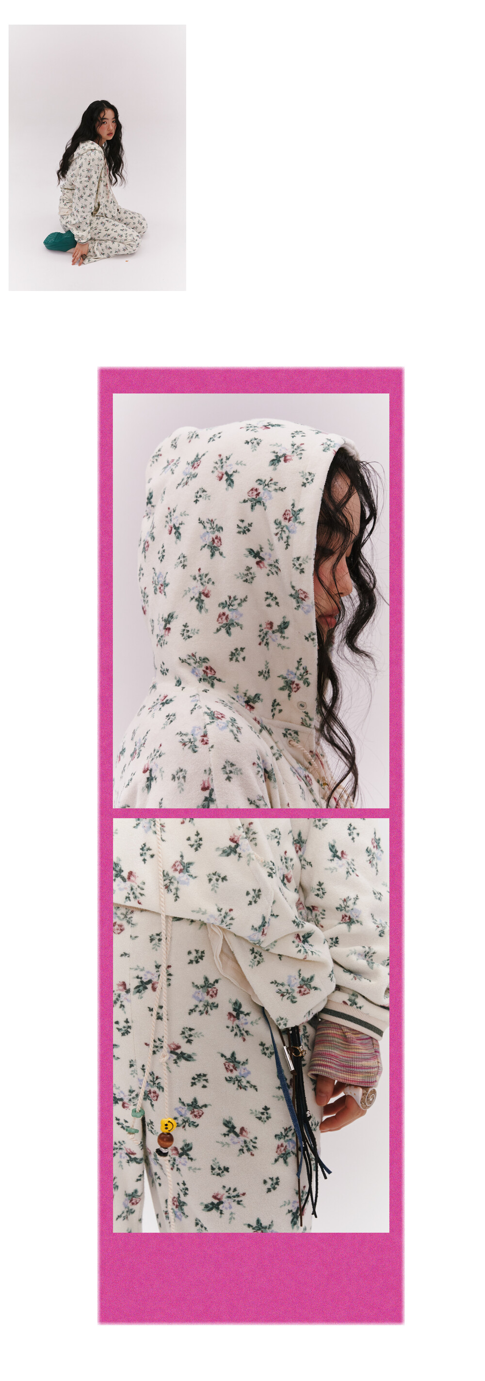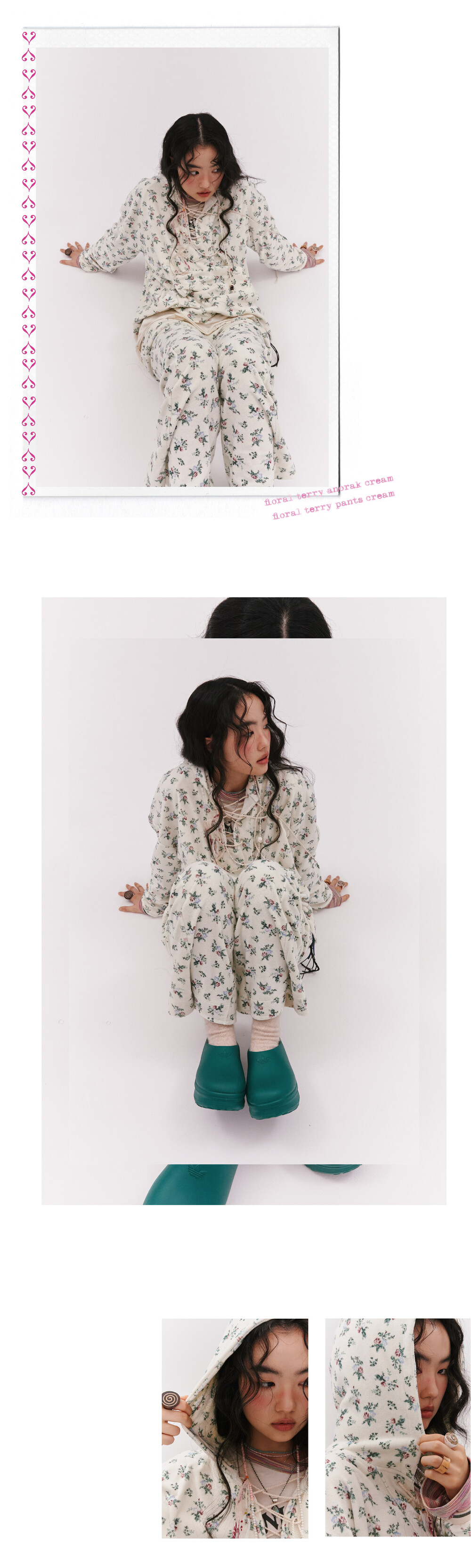 floral terry anorak cream