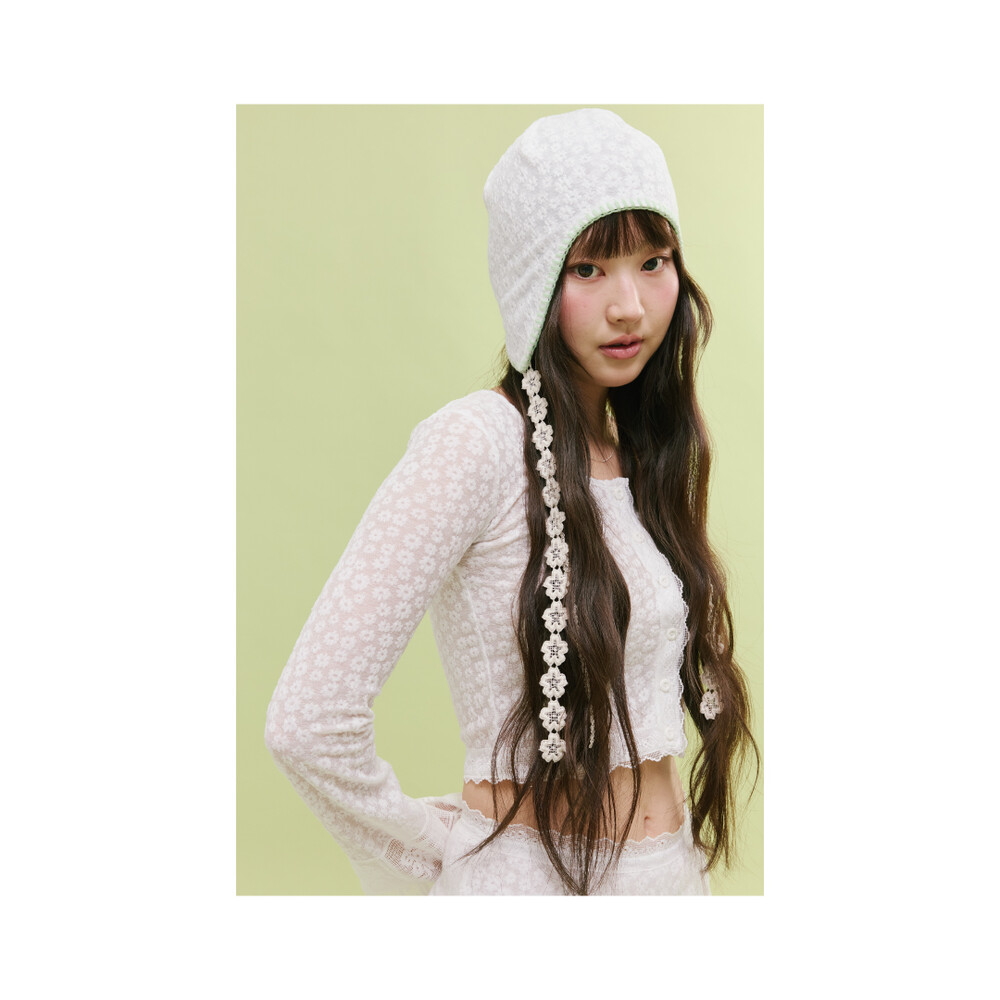 Lace earflap beanie white