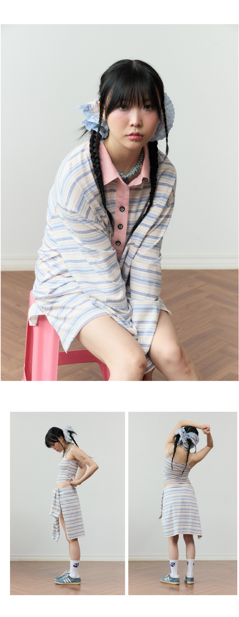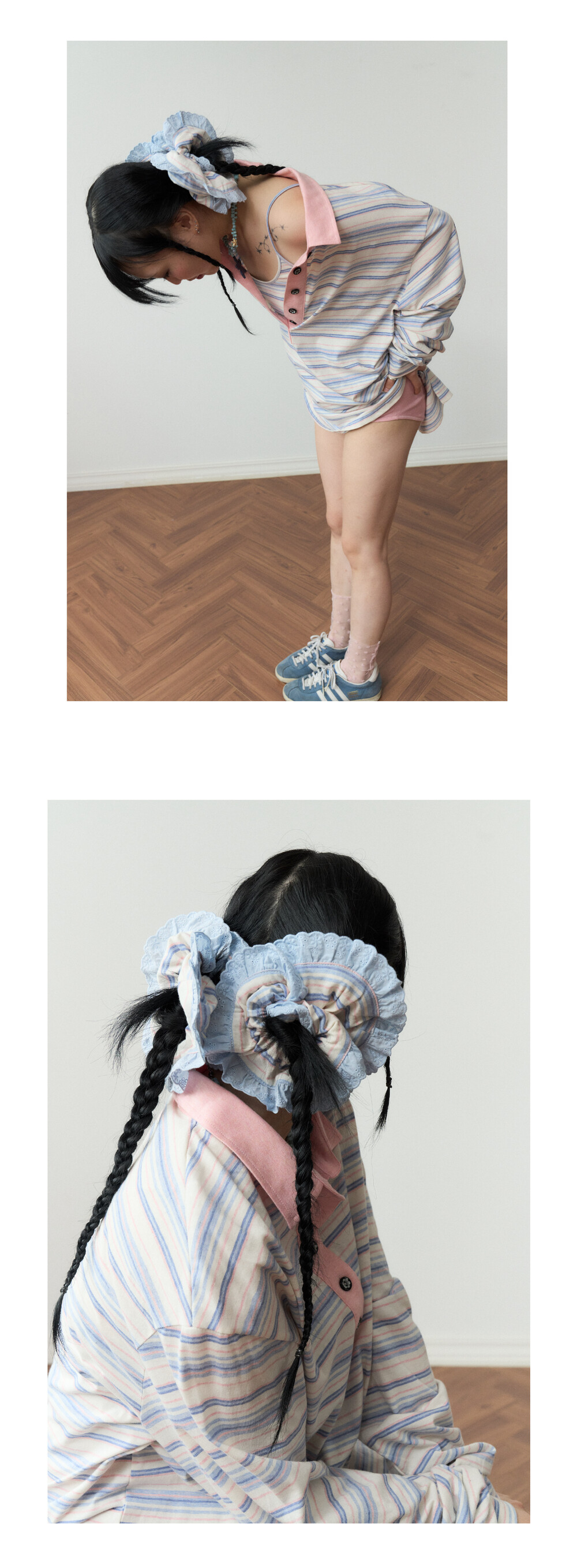 * 원단의 차이는 공장에서 옷감을 염색하는 생산 단위에 따라 미세한 염료의 양, 물의 상태, 염색 공정과 작업 시간 등의 다양한 요인에 따라 생길 수 밖에 없는 자연스러운 현상입니다.