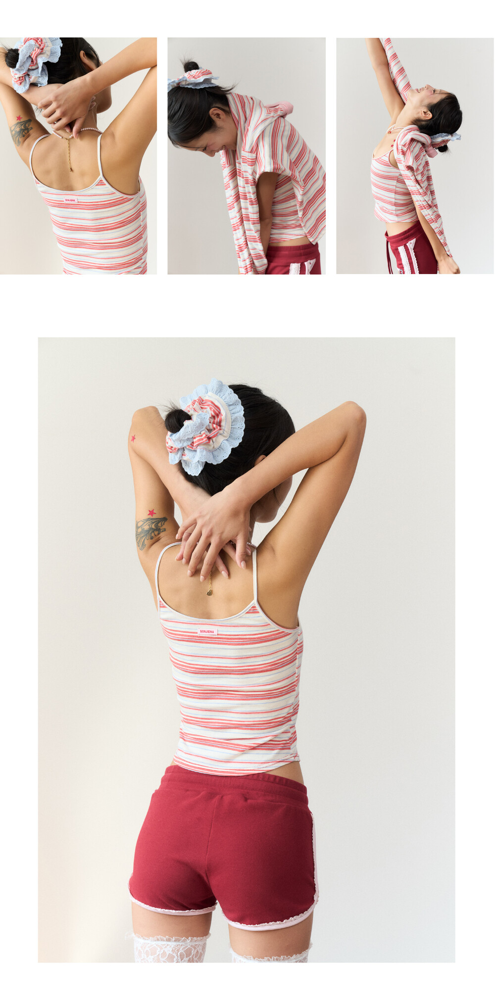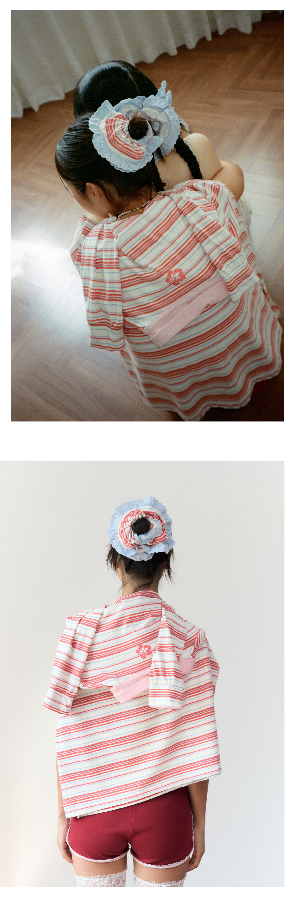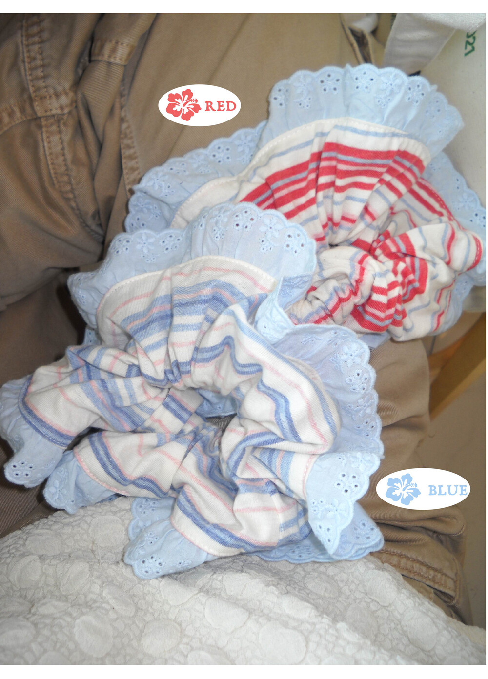 stripe lace scrunchie red